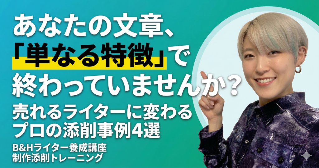あなたの文章、「単なる特徴」で終わっていませんか?売れるライターに変わるプロの添削事例4選【B&Hライター養成講座 制作添削トレーニング】