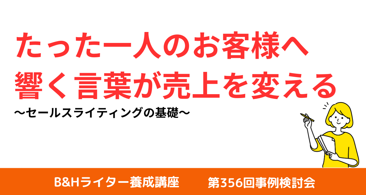 今回の記事では、第356回事例検討会に参加した受講生さんの声と、相談内容から改めて感じた「たった1人のお客様へ響く言葉が売上を変える」をお伝えします。