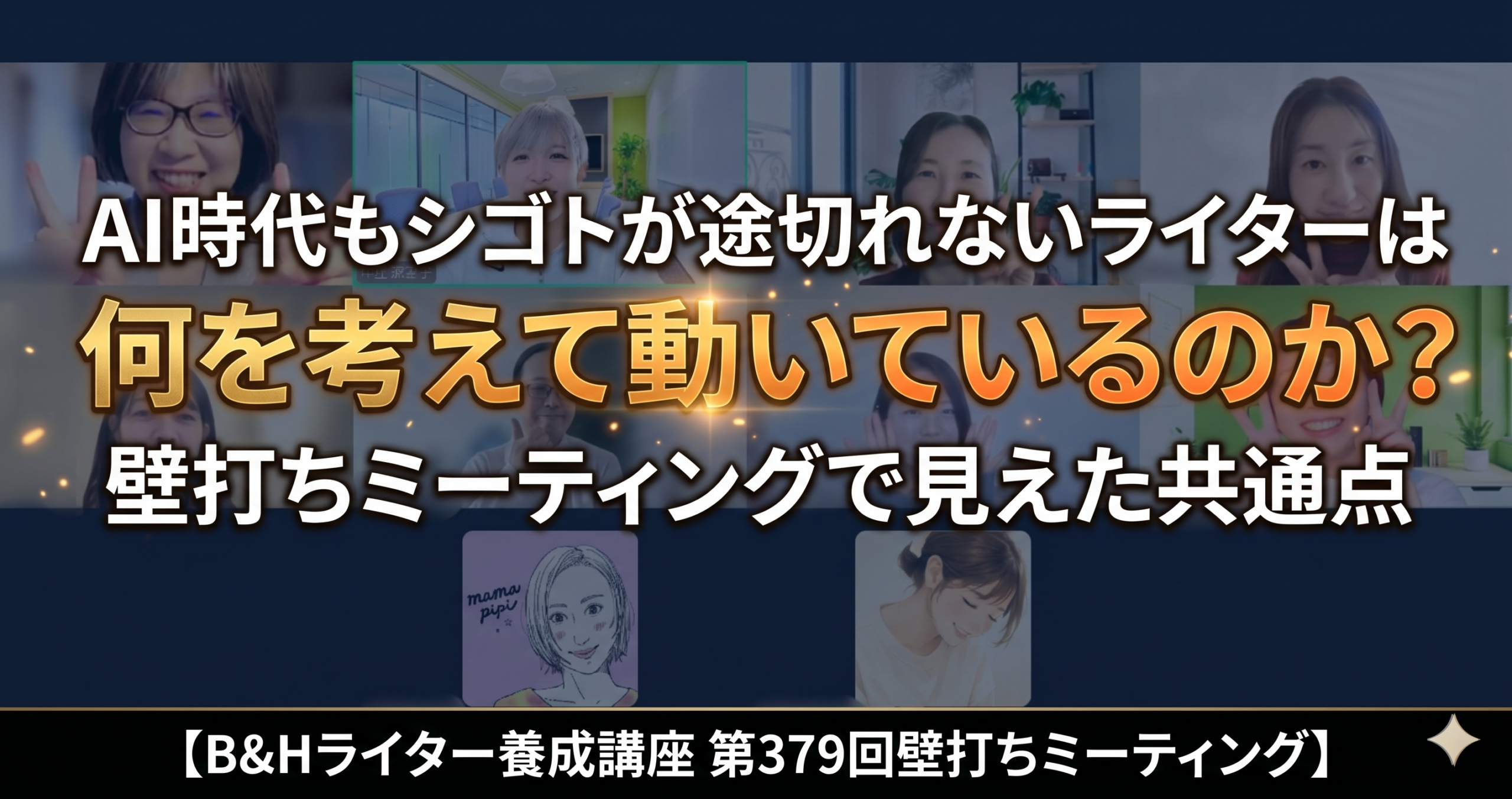 今回の記事では、第379回壁打ちミーティングに参加した受講生さんの声と、相談内容から学んだ「シゴトを増やす行動習慣と考え方」についてお伝えします。