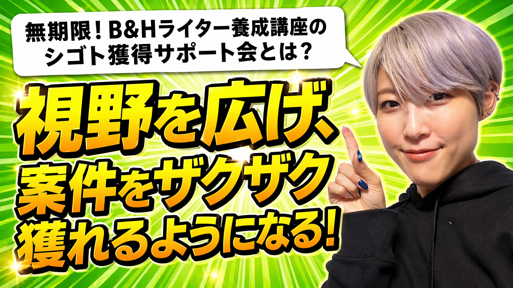 だからこそ、B&Hライター養成講座ではシゴト獲得のサポートを無期限で行い、必ず受講料を回収していただくようにしています。今回の記事では、シゴト獲得サポート会について、どのようなことをやっているのか?よく出る相談内容についてご紹介します!