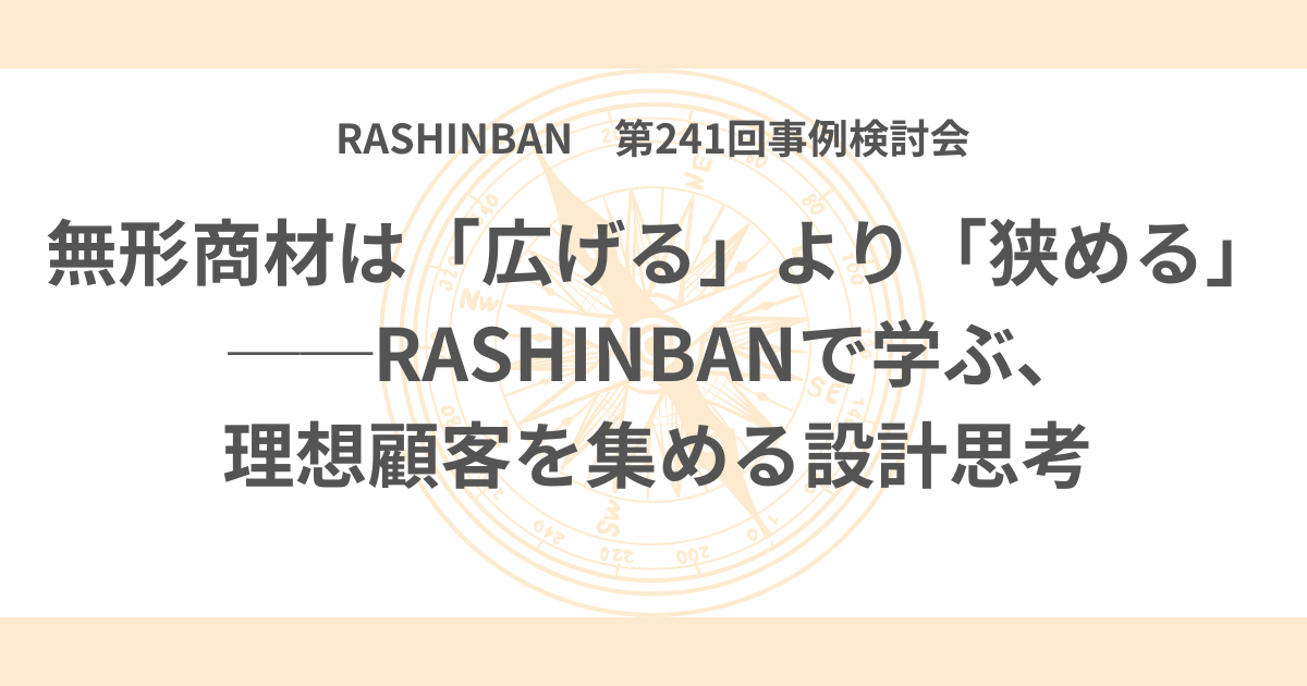 無形商材は「広げる」より「狭める」──RASHINBANで学ぶ、理想顧客を集める設計思考【第241回事例検討会】