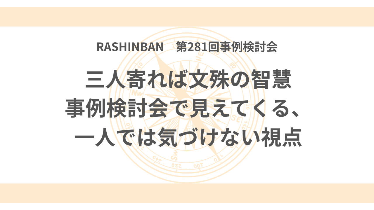 RASHINBANの第281回事例検討会では、江良が現在制作中のコンテンツのタイトル案をテーマに、参加者全員でアイデア出しを行いました。この記事では、「事例検討会で集まって考えること」がもたらす価値を解説します。