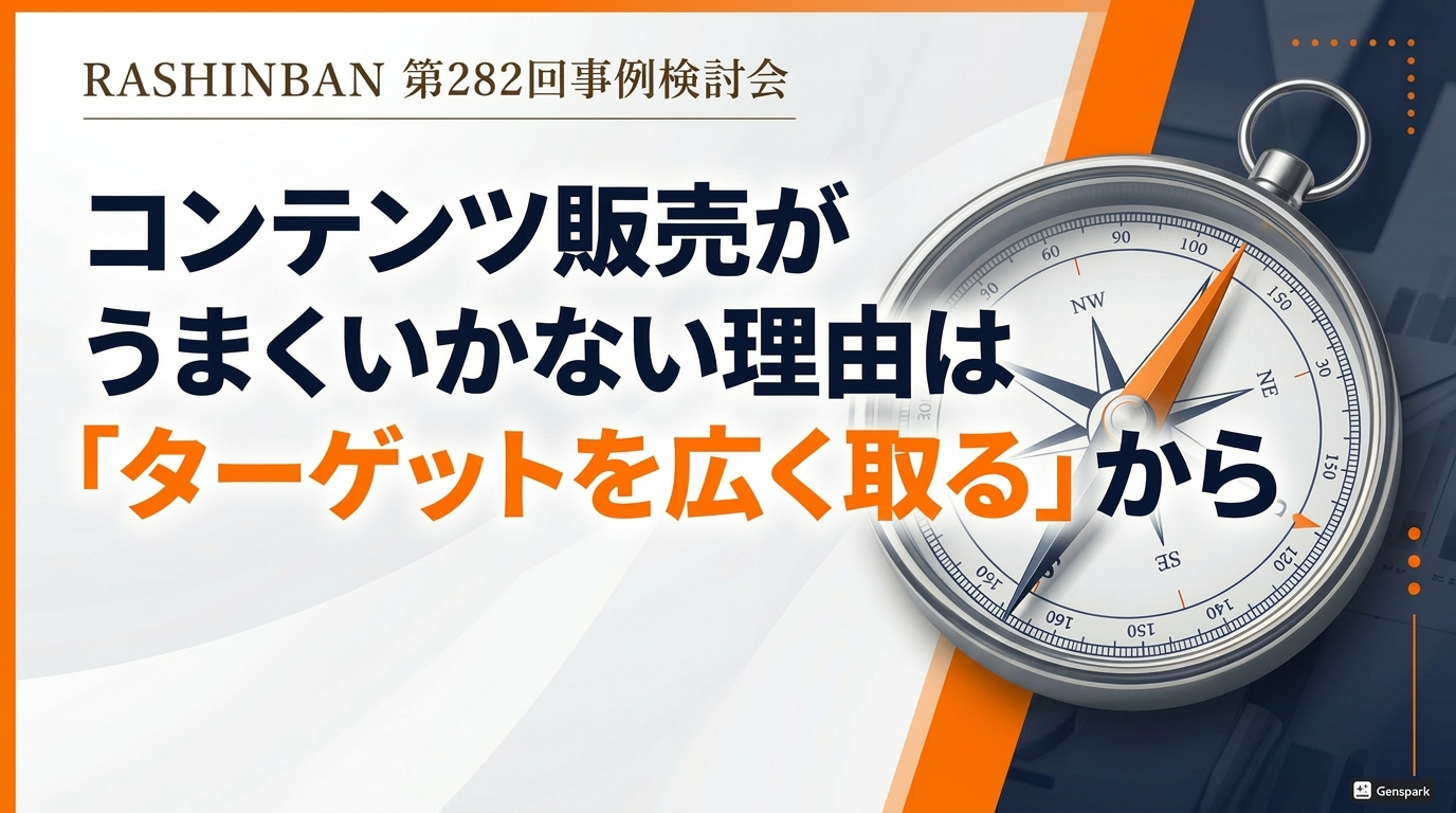 第282回RASHINBAN事例検討会に寄せられた参加メンバーからの相談内容をもとに、コンセプト設計で陥りがちな「ターゲットを広げすぎる罠」とその根本的な原因を解説します。